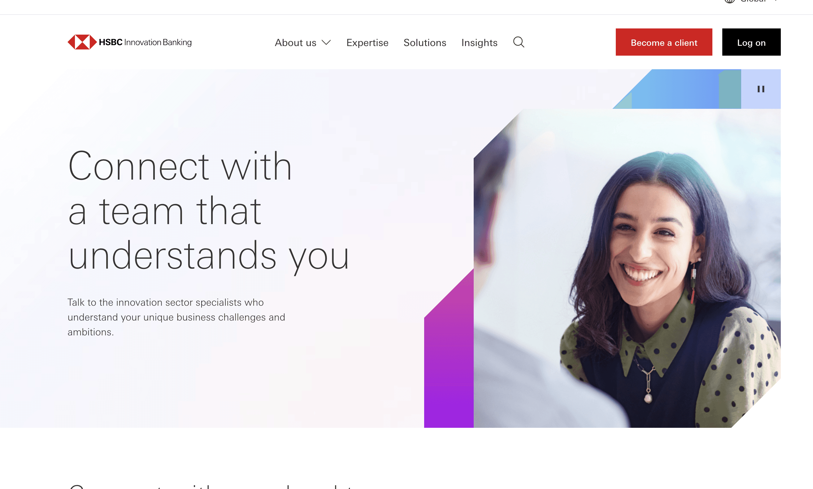 HSBC Innovation Banking is a specialised global banking proposition for businesses in cutting-edge sectors such as technology and life sciences, and their investors. Combining the innovation expertise of the former Silicon Valley Bank UK with HSBC's international strength, it offers flexible banking solutions for start-ups, scale-ups, and growth businesses across the UK, US, Israel, Hong Kong, and Europe.