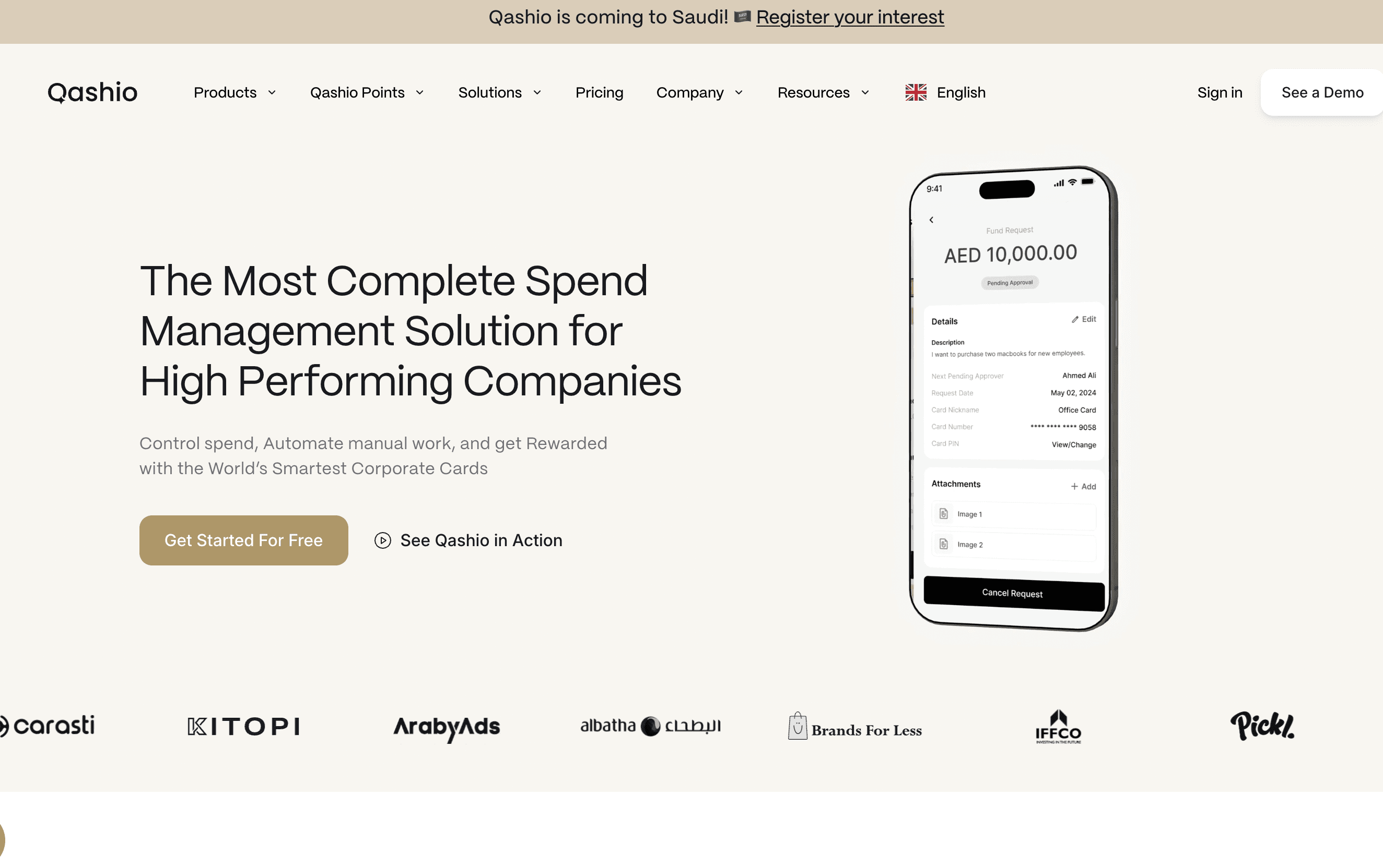 Qashio is a spend and expense management platform that combines software-enabled corporate cards with automated workflows and real-time reporting. It gives businesses complete visibility and control over company spend, particularly across the GCC region.